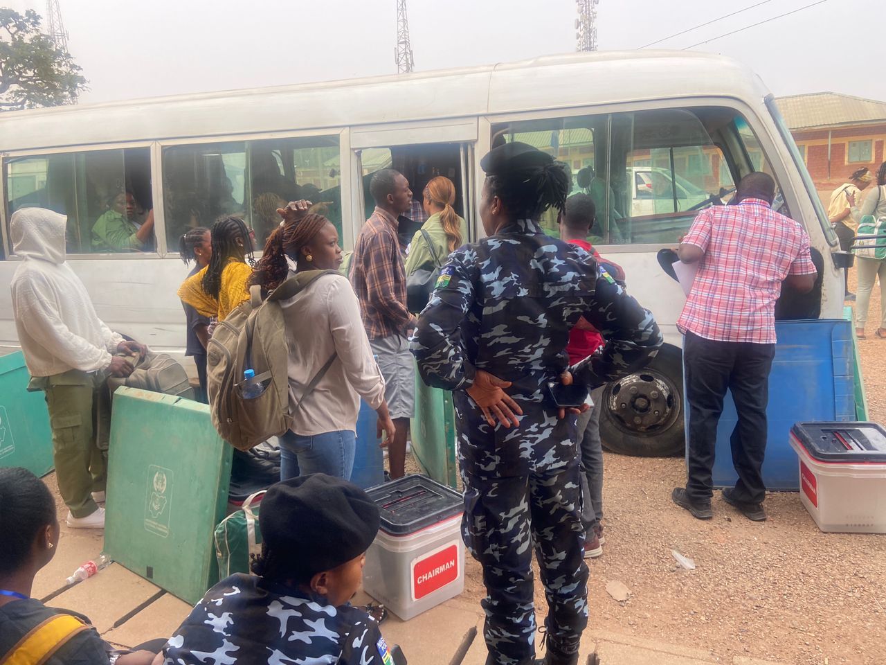 A noteworthy contingent of security officials was positioned at various points around the polling area, actively working to maintain order and support a smooth voting experience. While a number of eager voters had gathered in anticipation, the actual voting had yet to commence, as no ballots were cast at this early hour.