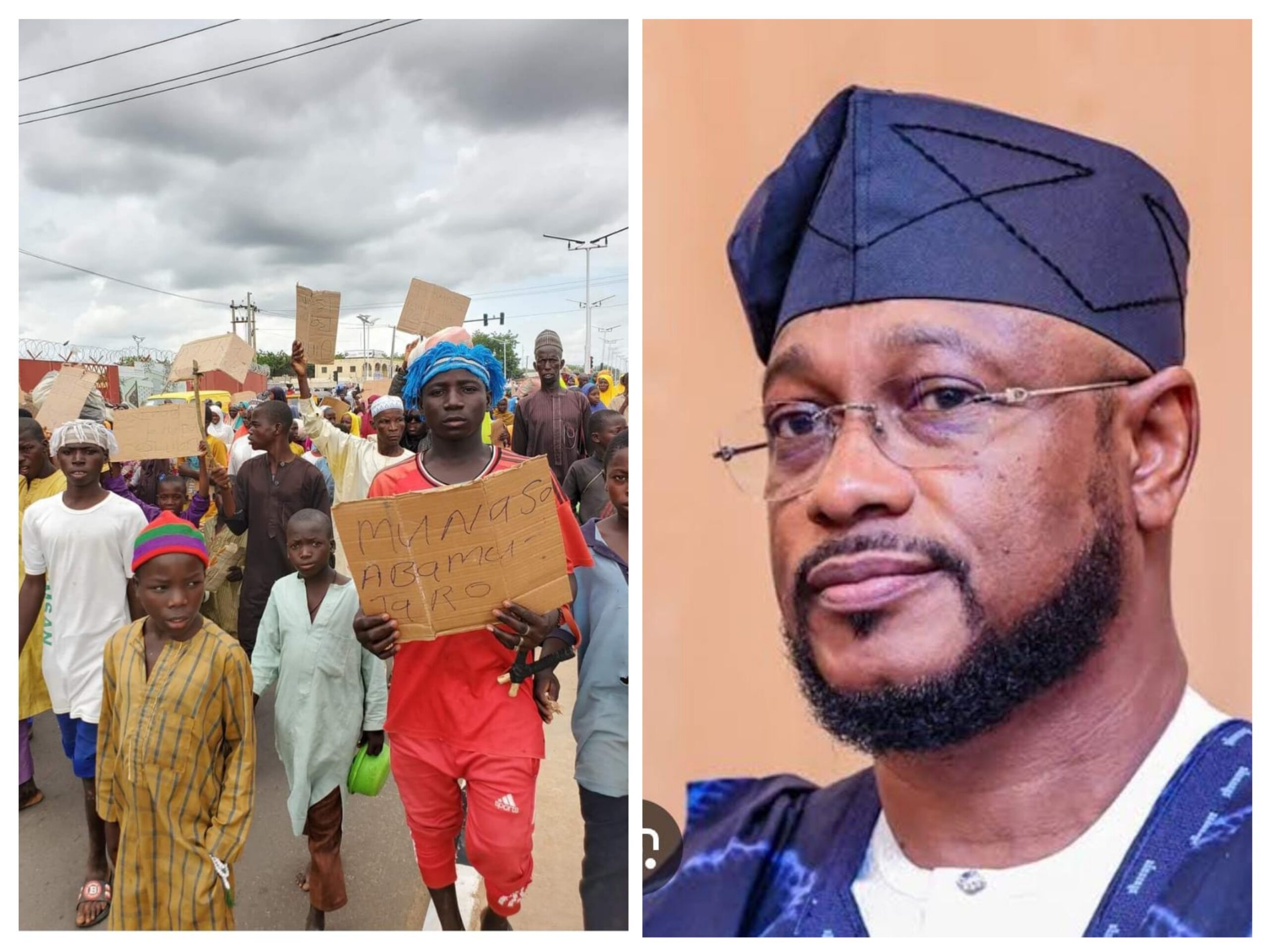 Jimrawa residents protest in Gusau, criticize gov Lawal for neglecting bandit issue while abroad