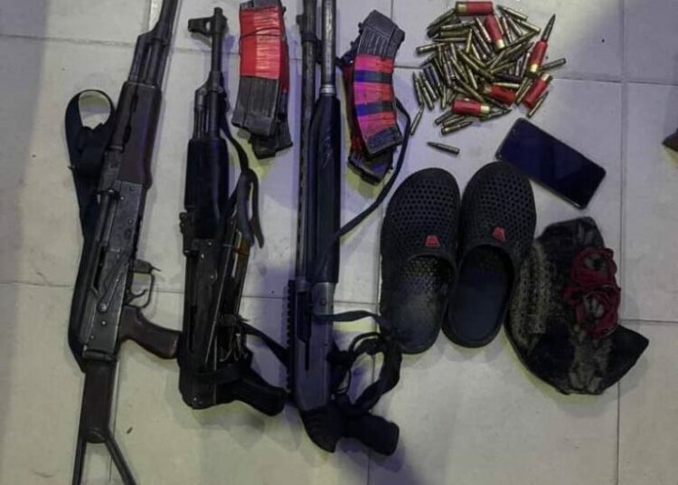 “Following the arrest, operatives conducted a further search of an uncompleted building in a nearby bush, where they recovered a sack bag containing a significant cache of weapons and other items,” the Police Spokesperson recalled.
